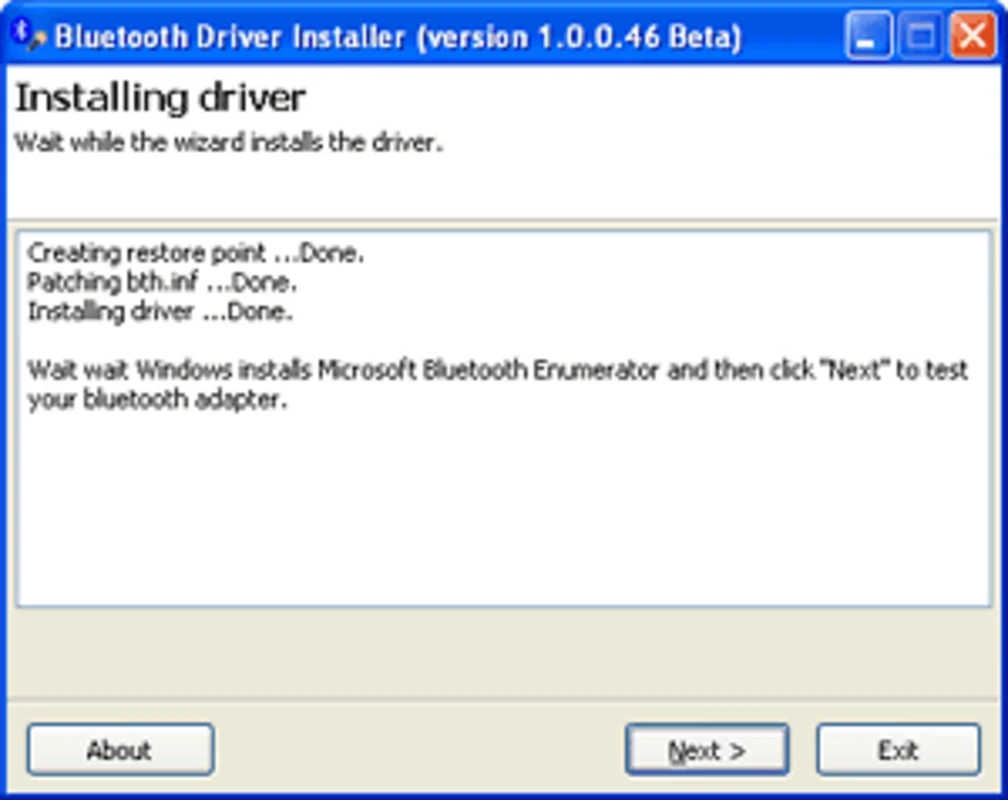 La procédure est très rapide et s'effectue en quelques clics. Le logiciel Bluetooth crée manuellement le point de restauration automatique lors de l'installation du pilote.